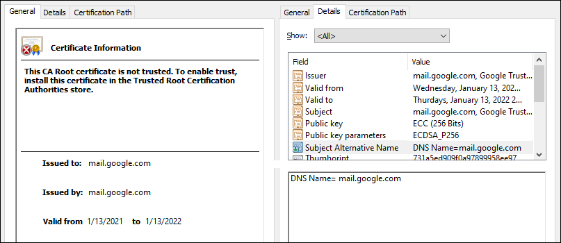 Refer to the exhibit. A company employee is connecting to mail.google.com from an endpoint device. The website is loaded but with an error. What is occurring?