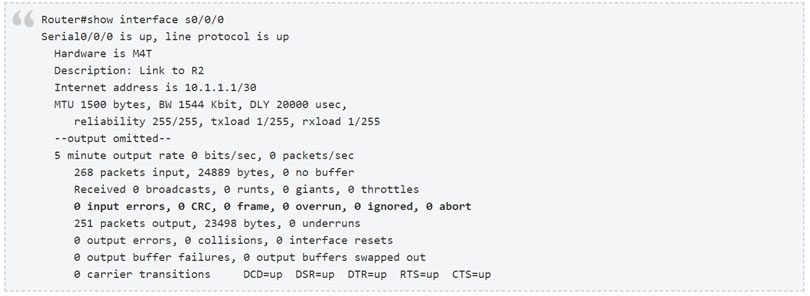 The output below show the interface counters with the "show interface s0/0/0" command: