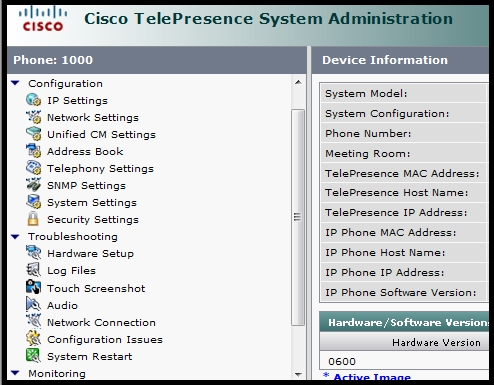 4. Reboot the Cisco TelePresence SX20.