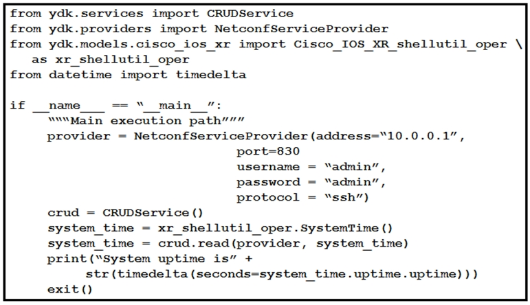 Refer to the exhibit. Regarding the Python script using YDK, what is the result for a device that is running Cisco IOS XR Software?