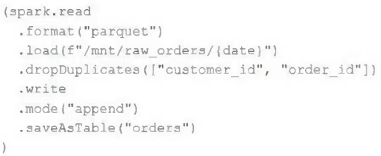 4. Each write to the orders table will run deduplication over the union of new and existing records, ensuring no duplicate records are present.