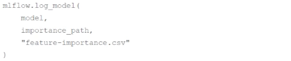 2. mlflow.log_artifact(importance_path, "feature-importance.csv")