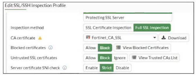 A network administrator enabled antivirus and selected an SSL inspection profile on a firewall policy.