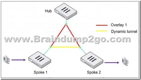 A client behind Spoke-1 sends traffic to a device behind Spoke-2.