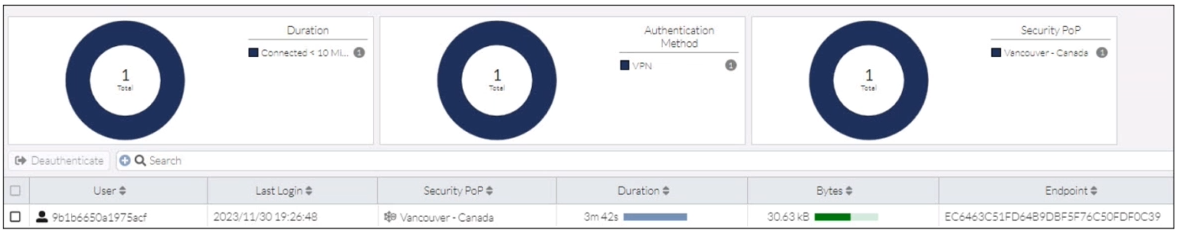 In the user connection monitor, the FortiSASE administrator notices the user name is showing random characters.