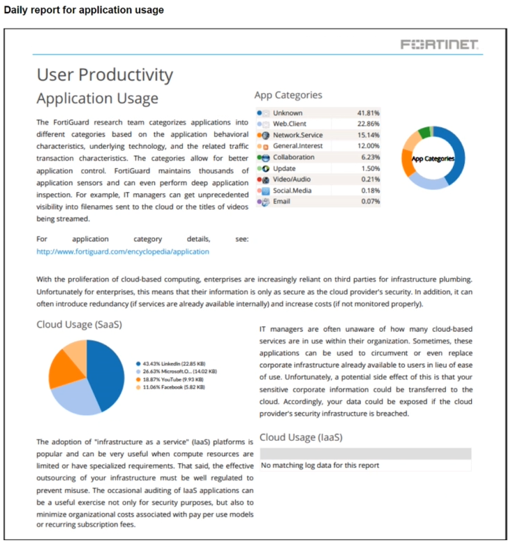 The daily report for application usage shows an unusually high number of unknown applications by category.