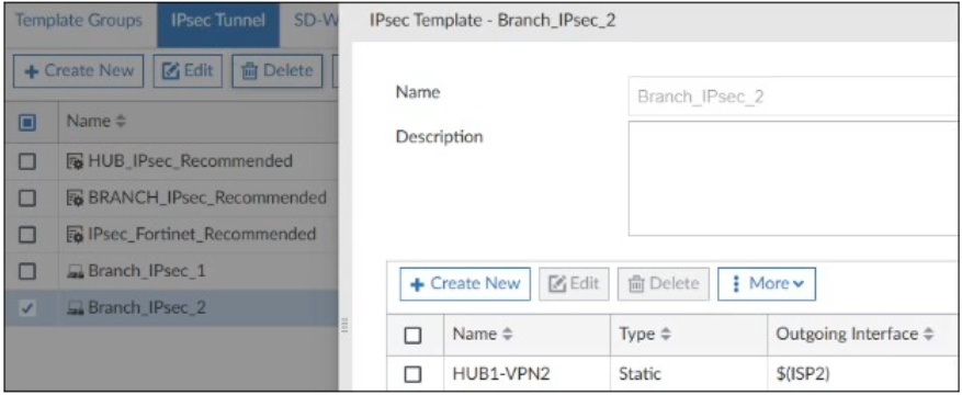 Two IPsec templates to define Branch_IPsec_1 and Branch_IPsec_2 are shown.