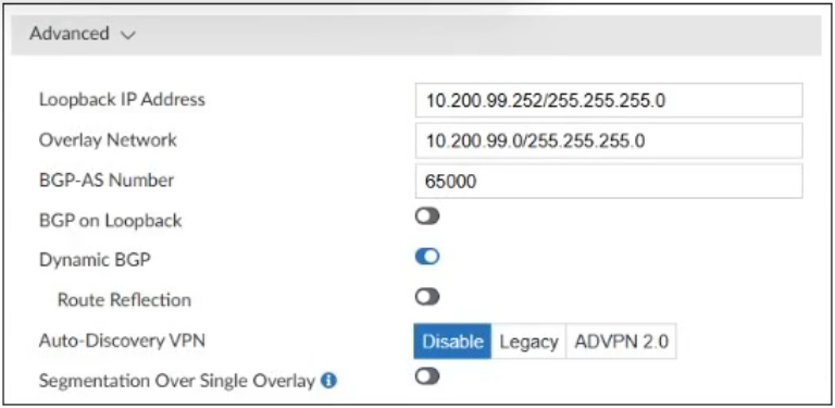 SD-WAN overlay template advanced settings