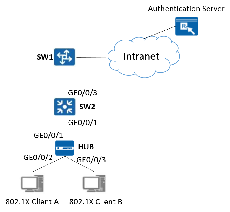 3. Assume that SW2 uses MAC address-based access control mode and 802.1X client A passes authentication first. If 802.1X client A goes offline first, then 802.1X client B will still have the corresponding network access permissions because the interface status remains unchanged.