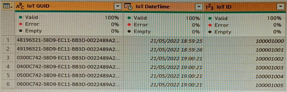 The IoT GUID and IoT ID columns are unique to each row in the query.