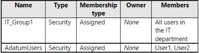 When you attempt to assign the Device Administrators role to IT_Group1, the group does NOT appear in the selection list.