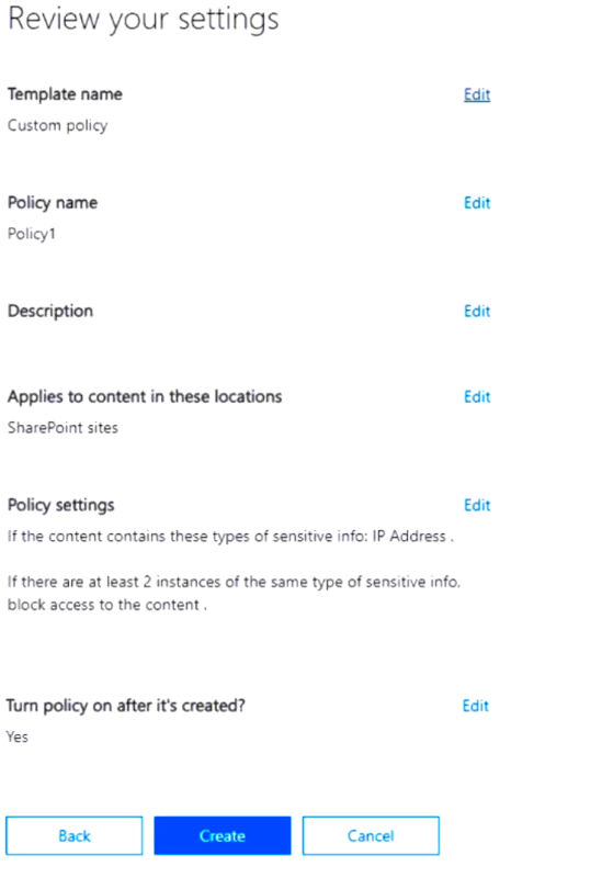 You create the data loss prevention (DLP) policy shown in the following exhibit.