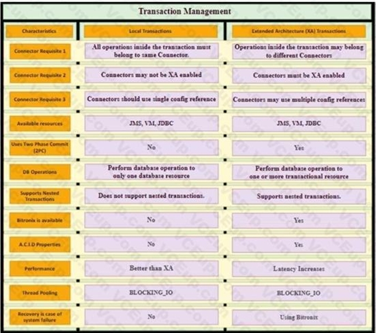 * Setting a transaction timeout for the Bitronix transaction managerSet the transaction timeout eitherIn wrapper.confIn CloudHub in the Properties tab of the Mule application deployment ?The default is 60 secs. It is defined asmule.bitronix.transactiontimeout = 120* This property defines the timeout for each transaction created for this manager. If the transaction has not terminated before the timeout expires it will be automatically rolled back.--------------------------------------------------------------------------------------------------------------------- Additional Info around Transaction Management:Bitronix is available as the XA transaction manager for Mule applications ?To use Bitronix, declare it as a global configuration element in the Mule application<bti:transaction-manager />Each Mule runtime can have only one instance of a Bitronix transaction manager, which is shared by all Mule applicationsFor customer-hosted deployments, define the XA transaction manager in a Mule domainThen share this global element among all Mule applications in the Mule runtime