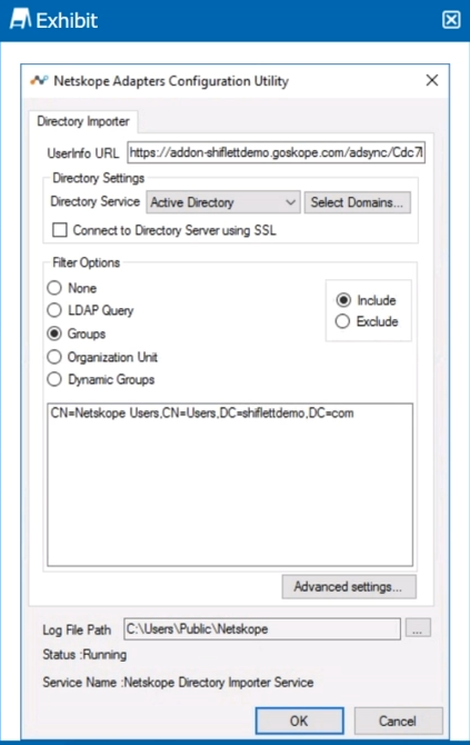 You installed Directory Importer and configured it to import specific groups of users into your Netskope tenant as shown in the exhibit. One hour after a new user has been added to the domain, the user still has not been provisioned to Netskope.