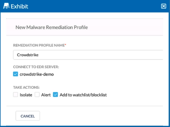 You are asked to integrate Netskope with Crowdstrike EDR. You added the Remediation profile shown in the exhibit.