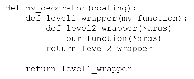 4. The code is syntactically incorrect - the function should be defined as def f1 (*args, **kwargs):