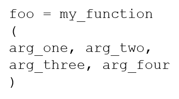Which of the following examples using line breaks and different indentation methods are compliant with PEP 8 recommendations? (Choose two.)